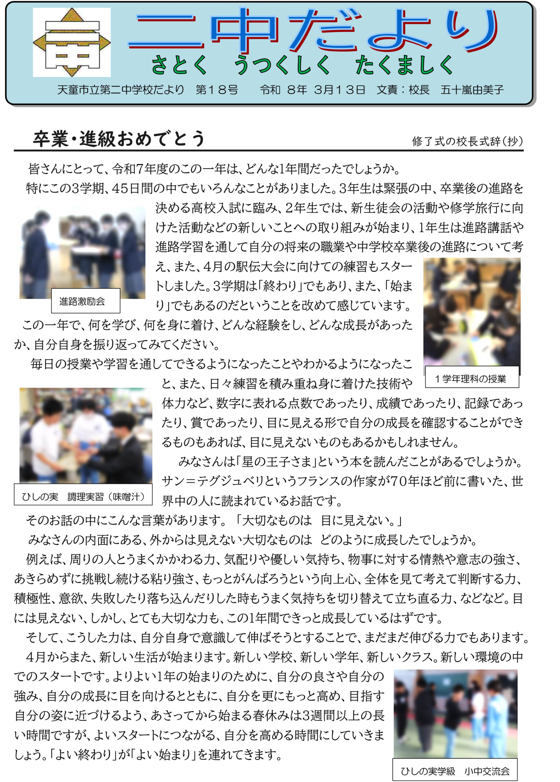 二中だより 17号 令和8年3月14日