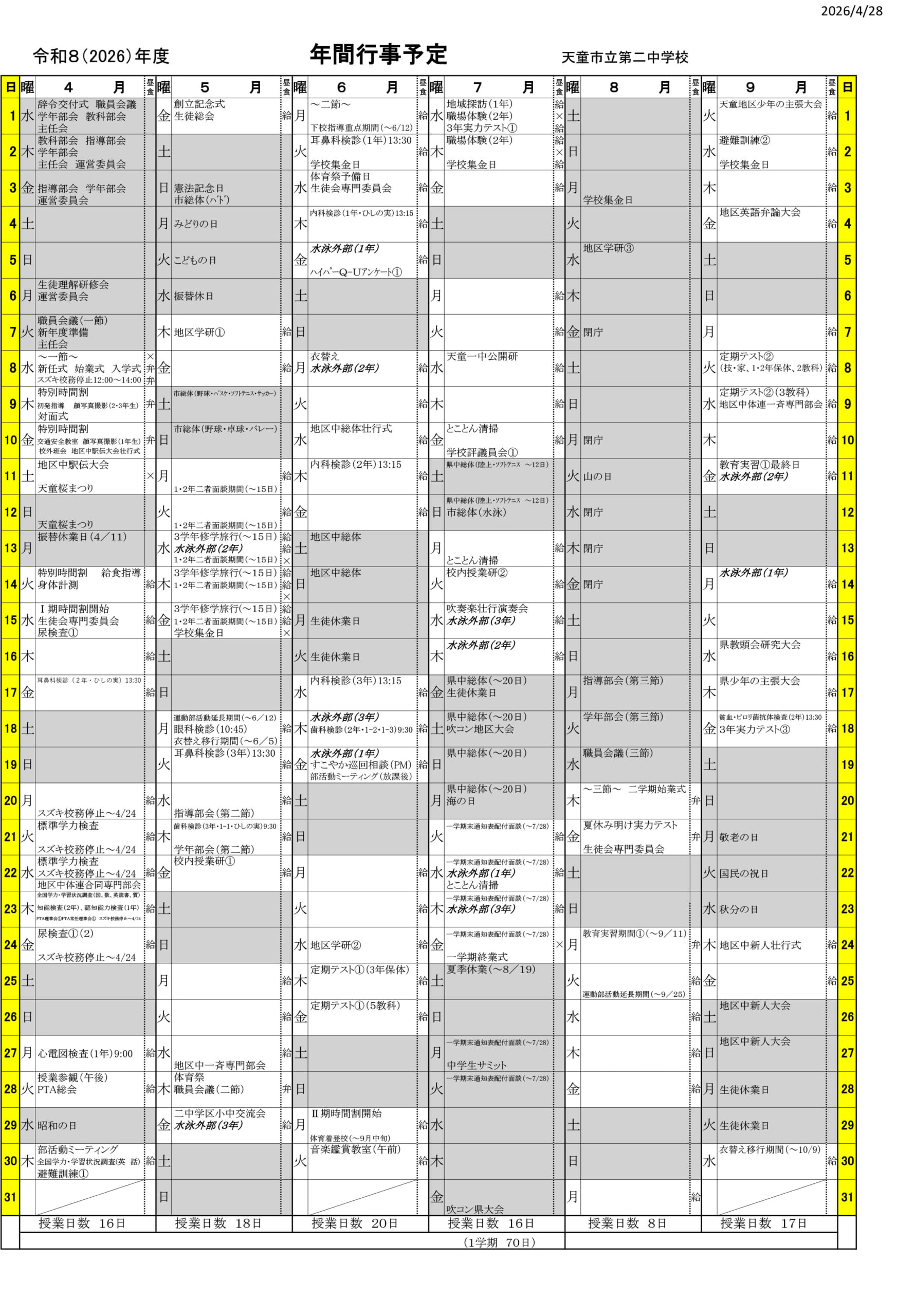 二中だより 1号 令和8年4月17日