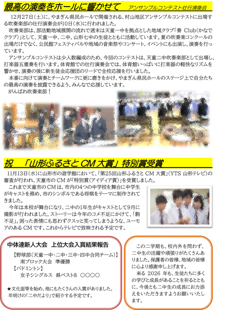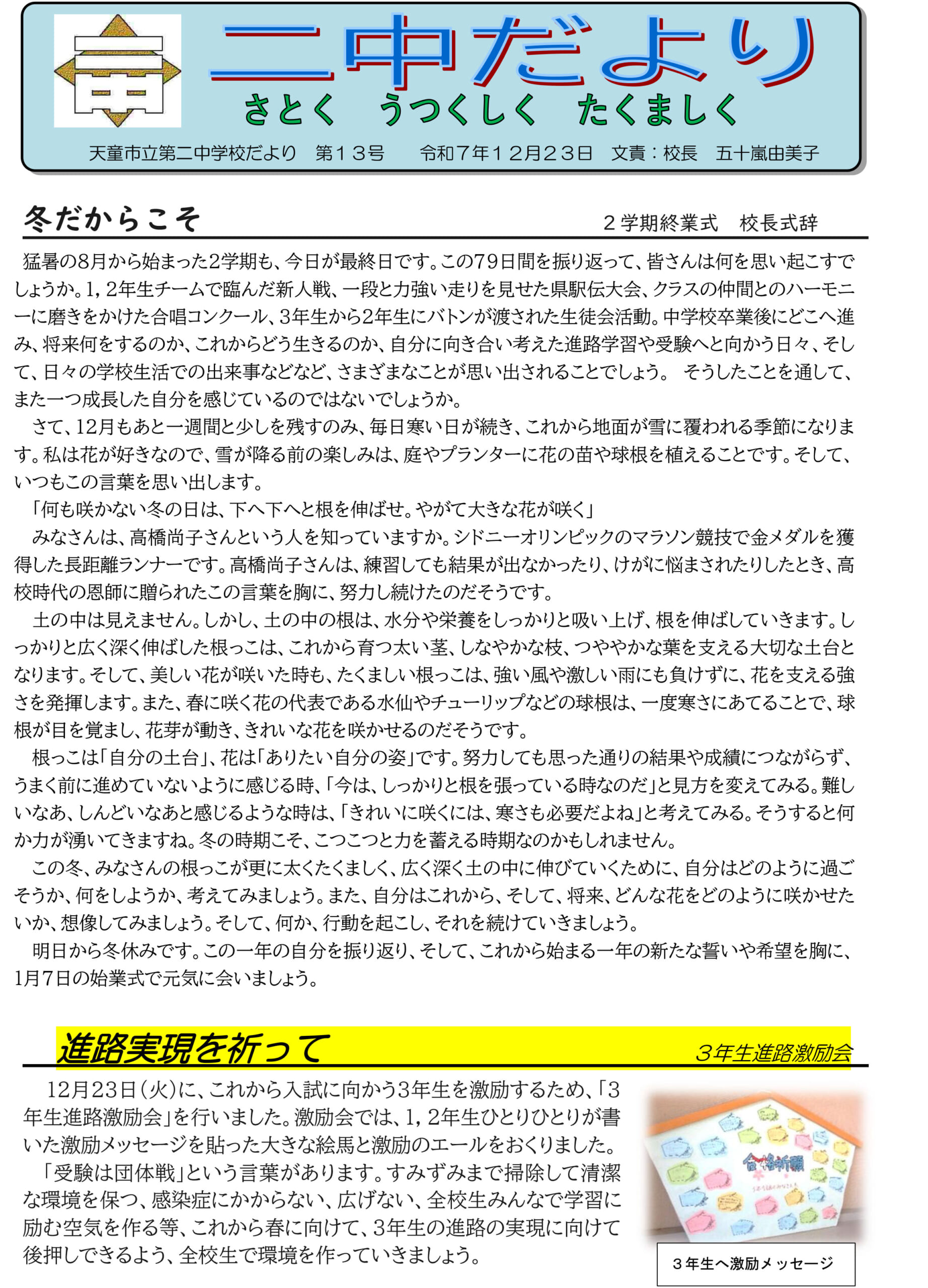二中だより 13号 令和7年12月23日