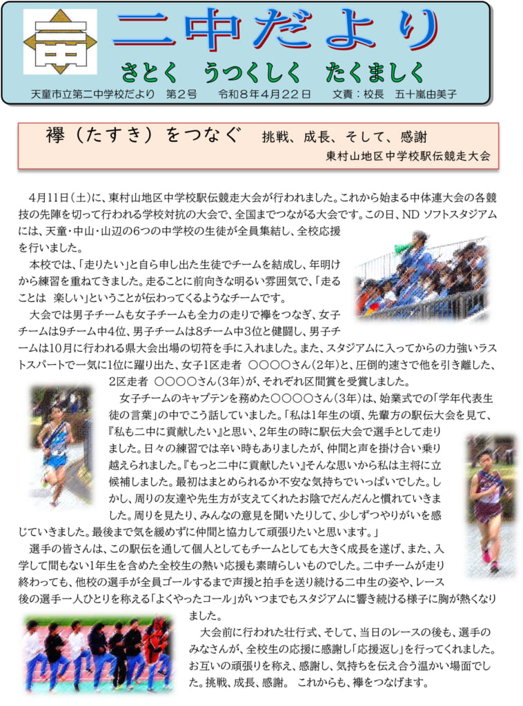 天童市立第二中学校二中だより二中だより 2号 令和8年4月22日