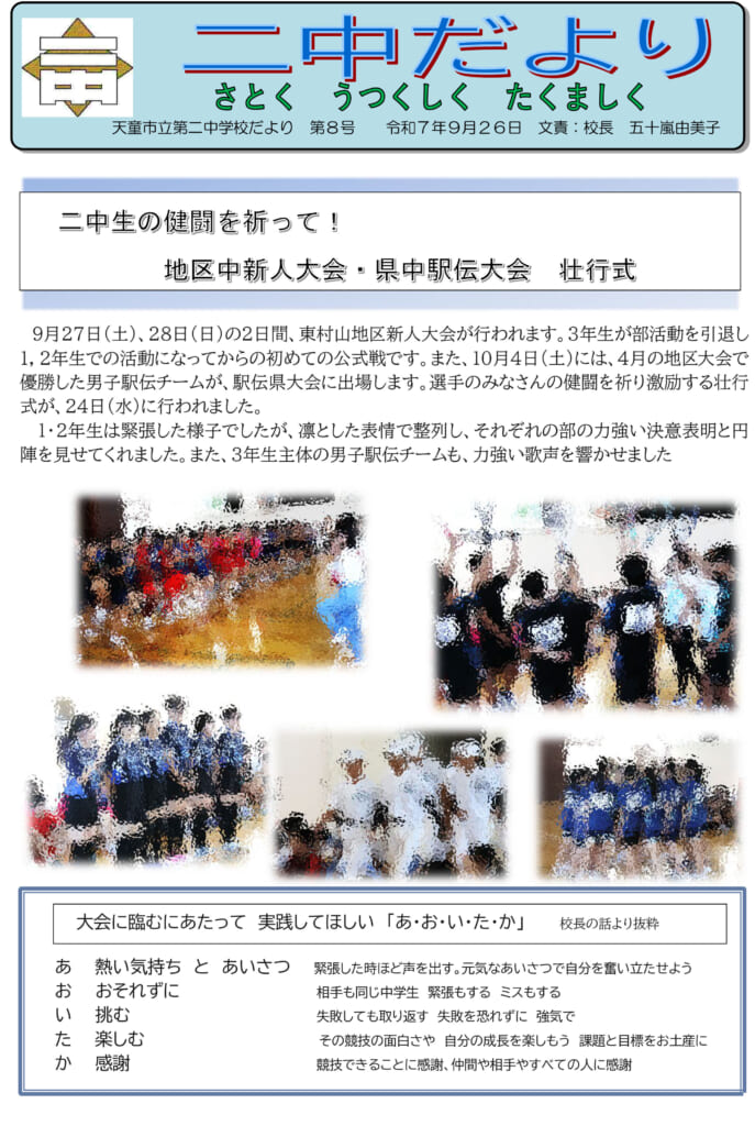 天童市立第二中学校二中だより二中だより 8号 令和7年9月26日