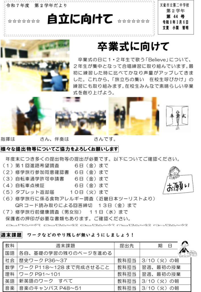 第2学年だより 44号 令和8年3月6日